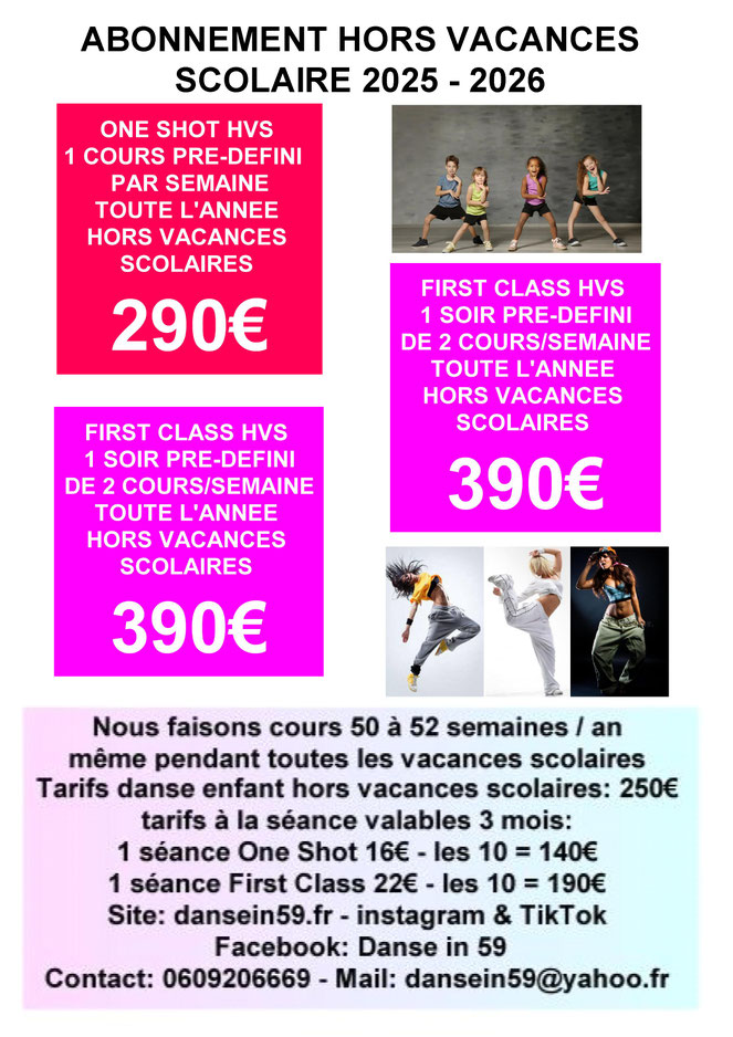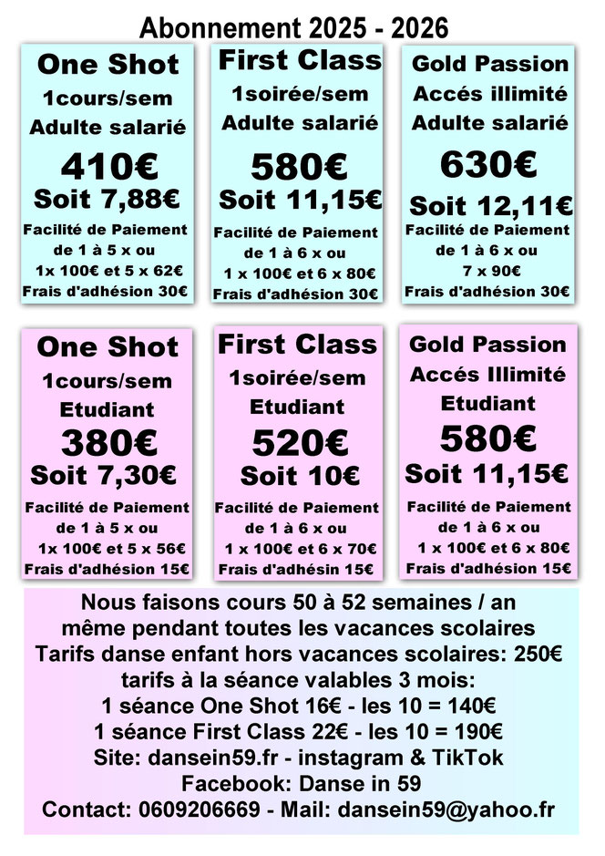 Découvrez les tarifs 2025 - 2026 Danse in 59