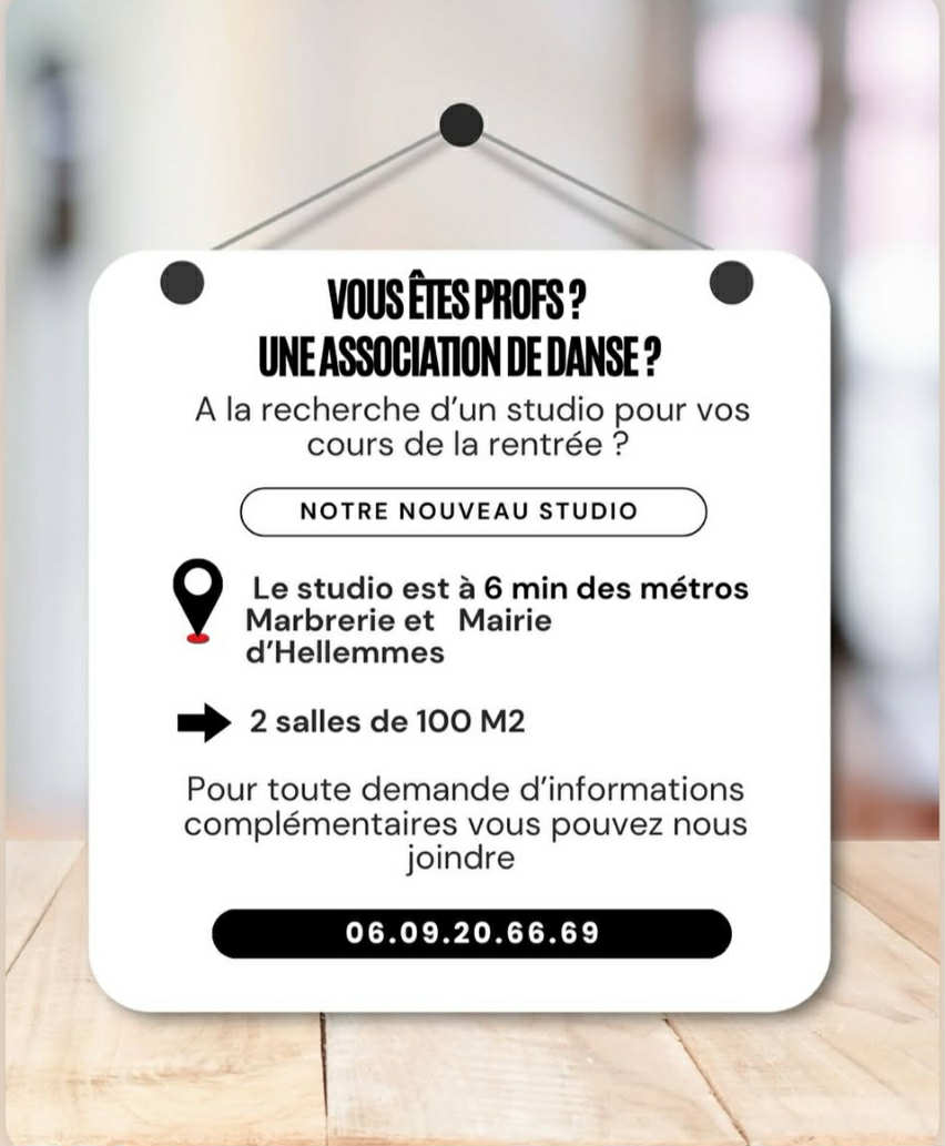 Vous êtes un(e) prof de danse ou une association, à la recherche de la location d’un studio pour la rentrée ? Appelez-nous au 06.09.20.66.69 🕺